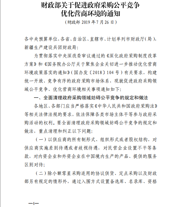 下一篇:南寧市財政局 關(guān)于進一步優(yōu)化營商環(huán)境促進政府采購公平競爭有關(guān)事項的通知